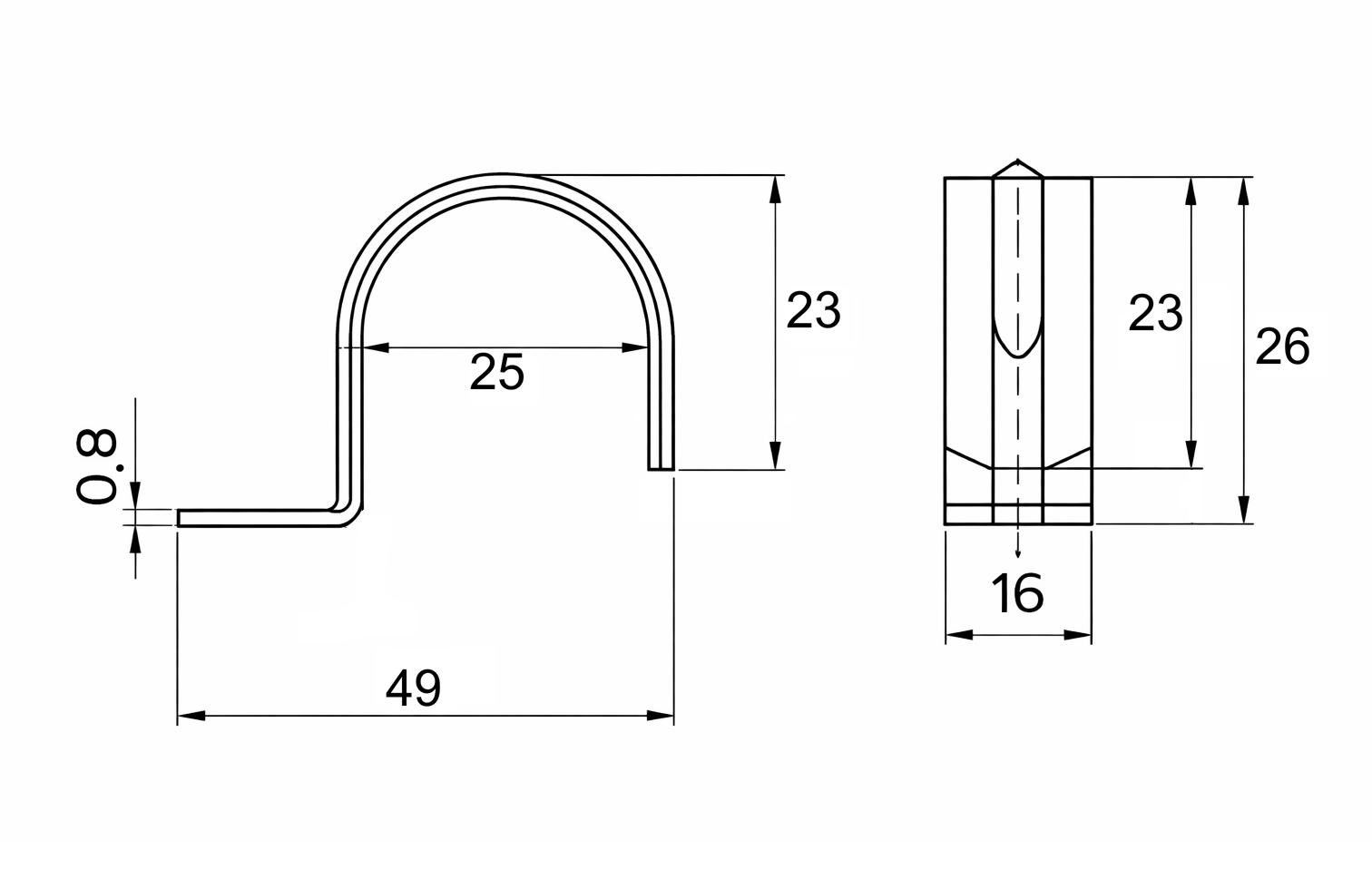 Скоба металлическая для монтажа труб диаметром 25-26 мм