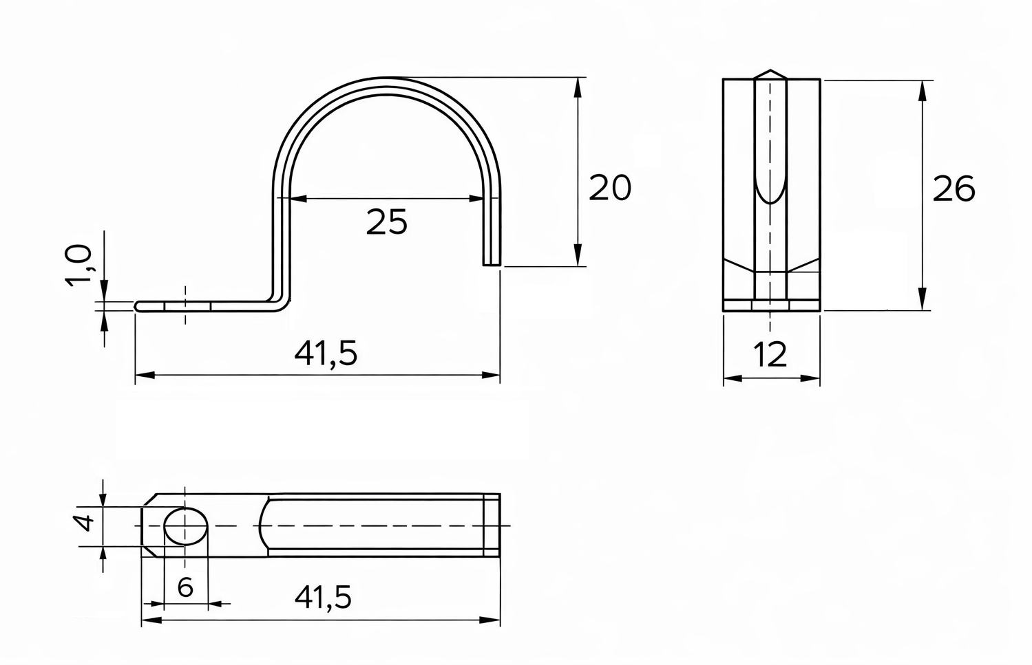 Скоба металлическая однолапковая СМО с отверстием 25-26 оцинкованная